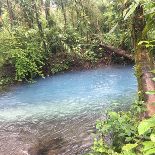 Cañas : notre hôtel est superbe, l'occasion de se détendre un peu après la route. Nous visitons alors le Rio Céleste, cette rivière qui finit en cascade, et dont la couleur est absolument sidérante. La légende raconte que dieu, lorsqu'il eut fini de peindre le monde trempa ses pinceaux dans cette rivière lui donnant cette couleur si particulière. L'explication scientifique (et certainement plus plausible) est tout autre. Il s'agit en réalité d'une différence de taille de particules. On voit d'ailleurs très bien l'endroit où le changement se fait. Pendant longtemps on a cru que la couleur venait de la proximité du volcan Tenorio et de la concentration en certains minéraux.