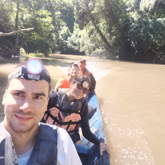 Le lendemain visite de KongLor Cave, entrée 65 000kips. Et là c’est une aventure. Nous sommes 6 deux capitaines nous sont affectés. Un sent l’alcool à 3km. On embarque tous dans une petite barque qui peine à avancer. De l’autre côté on débarque et marche jusqu’à l’entrée de la grotte. Aucune lumière, nous sommes guidés par nos frontales. Là les deux capitaines prennent chacun un moteur (ou devrais-je dire une débroussailleuse sur laquelle est montée une hélice), on monte sur la barque et on s’enfonce dans les entrailles de la montagne. La rivière souterraine traverse entièrement la montagne pendant 7 kilomètres, dans un noir profond, avec des stalactites et stalagmites que l’on éclaire difficilement. Avant pour franchir la montagne pour les villages de l’autre côté il fallait passer 7 cols soit 8heures de marche. Maintenant il suffit de monter dans l’un de ces engins (et de faire quelques prières). Certaines salles sont des impasses, et à cause du courant si l’on y rentre il est impossible d’en ressortir (la salle aux esprits). A ce moment-là je pense que si on se renverse, nos frontales prendront l’eau et qu’on sera dans le noir complet… comment rejoindre la lumière du jour ? c’est ce moment précis que Mathieu choisit pour me dire « il doit y avoir d’énormes poissons là-dessous" et que Joe complète « c’est l’endroit parfait pour faire disparaître un corps ». Me voilà rassurée…
