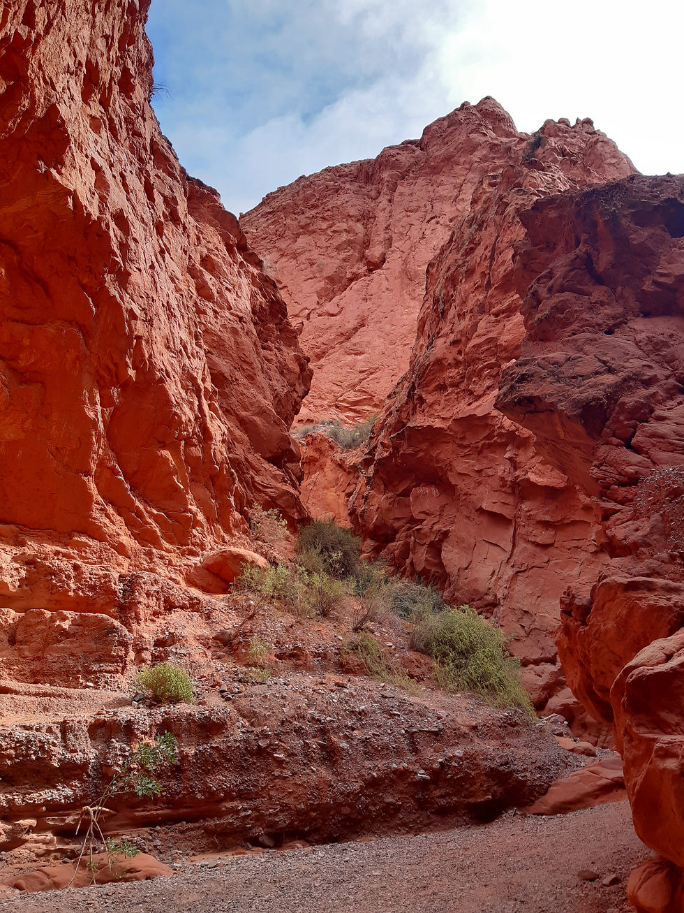On passe par le petit village d’Uquia avec ses maisons typiques, et on roule jusqu’à la Quebrada de las señoritas Entrée 300 pesos par personne, mais attention il y a deux chemins : le premier « l’opcional » est gratuit, mais pour aller vraiment jusqu’à la grotte de las señoritas il faut se faire accompagner d’un guide local, ce que l’on vous dit une fois que vous avez payé les droits d’entrée. Un peu fâchée, j’exprime mon mécontentement auprès des gardes sur la manière assez obscure de procéder (qui nous rappelle d’ailleurs un peu l’Asie). Ceci dit, nous faisons donc le chemin « opcional » et les paysages sont superbes, les gorges rouges, les dédales au milieu de la pierre, surprenant et magnifique. Nous sommes tout de même contents de l’avoir fait, malgré ce petit bémol.